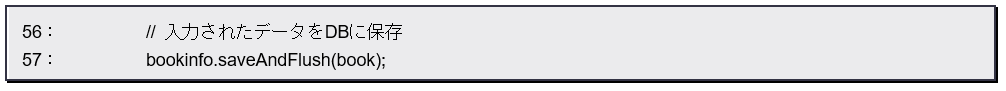これは送信されたフォームの値が自動的にBookインスタンスにまとめられて渡されます。これをそのまま保存すればいいのです。@ModelAttributeを利用することで、これだけシンプルに送信データを保存できるようになります。