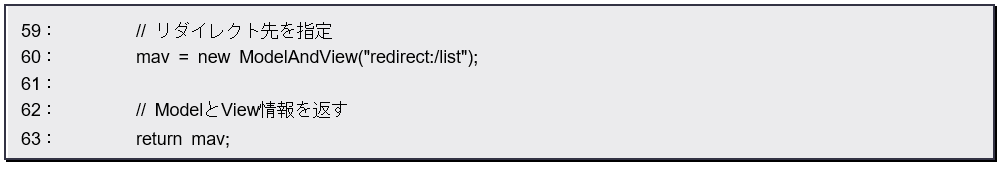 上記の通り、new ModelAndView の引数に “redirect:○○” といった形で指定すればいいのです(○○は遷移先のURL)。たったこれだけで、別のページに遷移させることができてしまいます。フォワードの場合もやり方は同じです(“forward:○○”)。