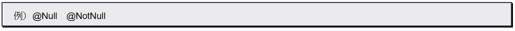 この2つはセットといってよいでしょう。それぞれ「値がnullである」「値がnullでない」ということをチェックします。引数はなく、ただアノテーションを記述するだけです。