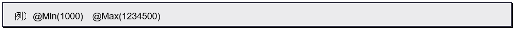 数値(整数)を入力する項目で、入力可能な値の最小値、最大値を指定します。引数が1つあり、それぞれ最小値、最大値となる値を用意します。