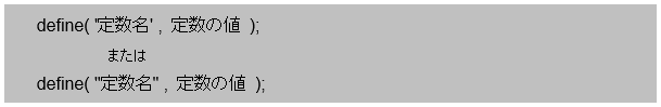 定数をプログラムで利用するための手順を紹介していきます。定数を作成するには「define関数」を利用しておこないます。