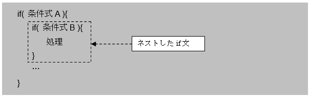 if文のネストは条件分岐文の各ブロック内で、さらに条件分岐を記述したものを指します。