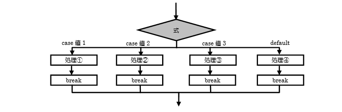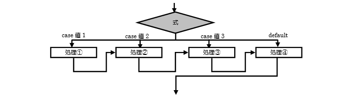 switch文の処理の流れをフローチャートにすると、図3.2.1のようになります。