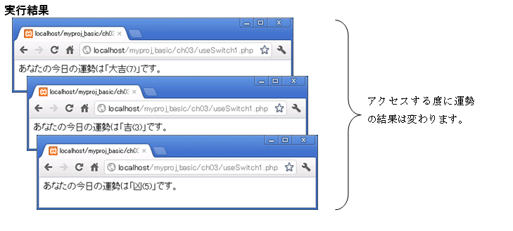 アクセスURL:http://localhost/myproj_basic/ch03/useSwitch1.php