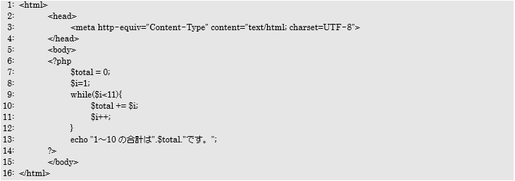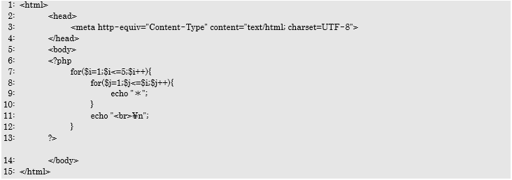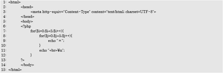 内側のループ($j)の条件式を「$j<=$i」にすることで、外側のループ($i)回数と同じだけ内側のループ処理が行えるfor文にすることができます。