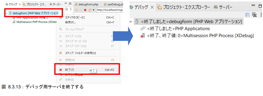 図 8.3.13:デバッグ用サーバを終了する