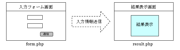 入力フォーム画面からの情報を、別画面に送って処理するような場合に用いることが多いです。