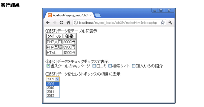 アクセスURL:http://localhost/myproj_basic/ch09/makeHtmlInLoop.php