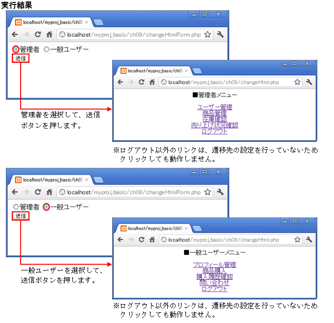 アクセスURL:http://localhost/myproj_basic/ch09/changeHtmlForm.php