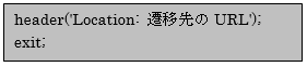 上記のように記述すると指定したURLへ画面遷移させることができます。exit関数を一緒に記述するのは、それ以降の処理が実行されないようにするためです。