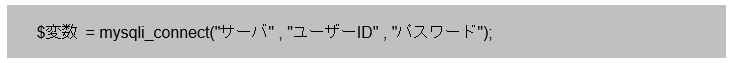 上記3つの情報で関数を呼び出すと、戻り値として「接続情報」を受け取ります。この接続情報は一部のmysqli関数を使用する場合に、必要になる重要な情報になります。