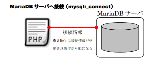 MariaDBサーバへ接続するには「mysqli_connect関数」を利用することで行えます。