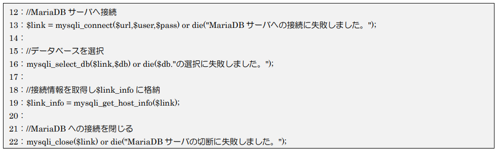 • MariaDBサーバへ接続:mysqli_connect関数