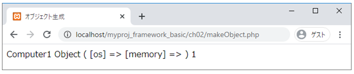アクセスURL    :http://localhost/myproj_framework_basic/ch02/makeObject.php