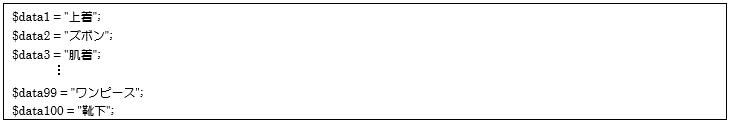 配列の命名規則- 配列名の先頭は必ず「$(半角ドル)」で始まる。