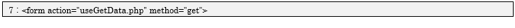 このプログラムはほぼpostForm.htmlのコピーになっています。違う部分は<title>タグで設定したタイトル名と、7行目のフォームのデータの送信先を「useGetData.php」、送信方法を「get」で設定しているところです。