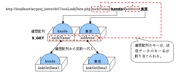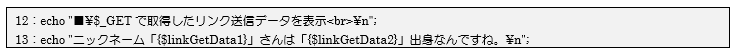 図 7.3.5:連想配列$_GETからリンクの送信データを取得して変数へ代入