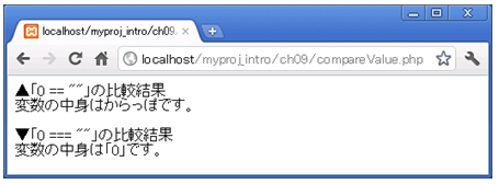 アクセスURL:http://localhost/myproj_intro/ch09/compareValue.php