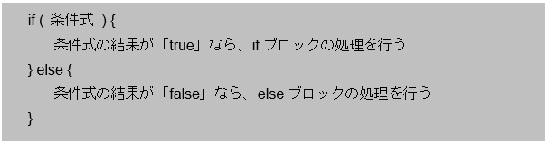 復習になりますが、条件分岐文の仕組みは条件式を判定した結果の「真偽値(true/false)」で、処理を行うかを判断しています。