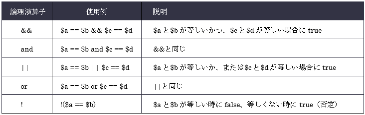 logicalOperator3.phpでは、「!($bool == true)」という記述がありました。しかし、式にある括弧を外すと行っている処理が異なり、結果が変わる場合があることに注意が必要です。