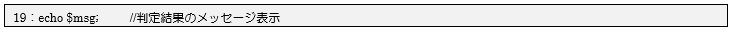 19行目は判定結果の変数$msgの値を画面に表示するようにしています。