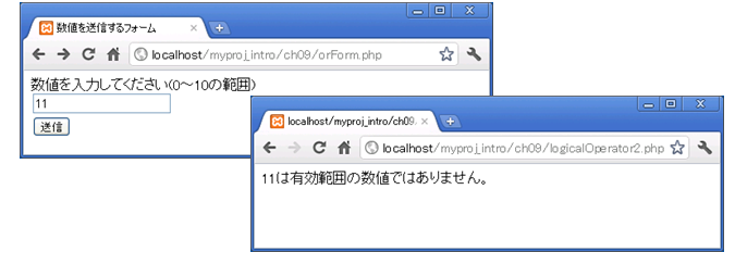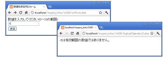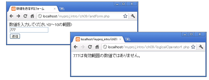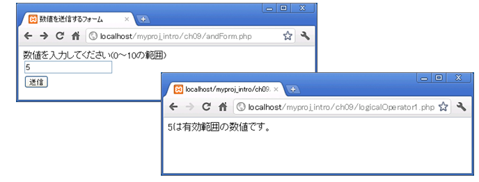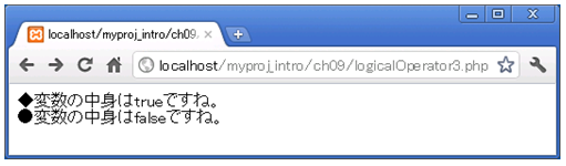 アクセスURL:http://localhost/myproj_intro/ch09/logicalOperator3.php