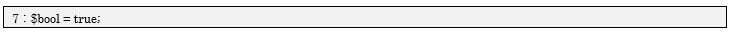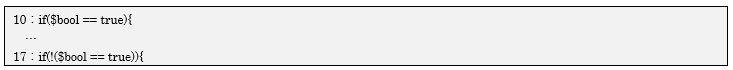7行目で今回の処理で条件分岐文の判定に使う変数$boolに「true」を代入しています。この変数は途中で変更することはないので、最後までtrueを保持します。