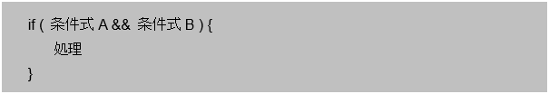 • 「&&」は全ての条件式が満たされたら処理を行う条件を作りたい場合に利用する。