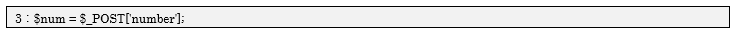 3行目で入力データをスーパーグローバル変数を使って取得し、変数$numに代入しています。