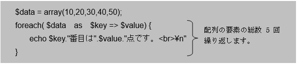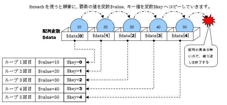 図 10.3.6: foreach文の各要素のデータとキー値の取り出し