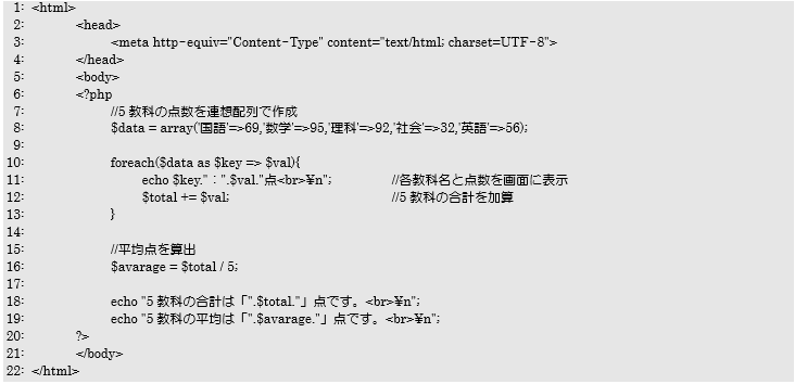 foreach文で配列データを処理するプログラム