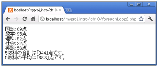 アクセスURL:http://localhost/myproj_intro/ch10/foreachLoop1.php