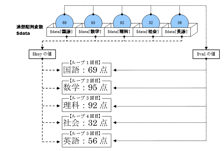 図 10.3.4: foreach文のデータとキー値の取り出し