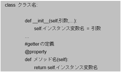 中の処理は、参照したいインスタンス変数の値を返す戻り値だけを設定するので、「return self.インスタンス変数名」と記載します。