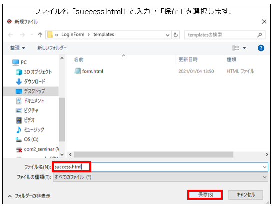 図 5.2 8:「success.html」ファイルの作成
