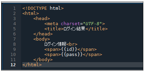 4 2で作成した「form.html」ファイルに以下に示すソースコードを記述する。