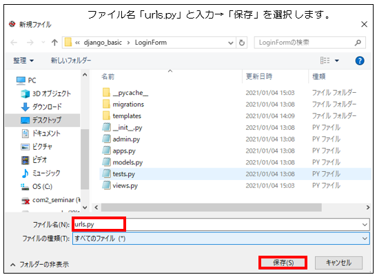 1 LoginFormプロジェクト直下に「urls.py」の作成