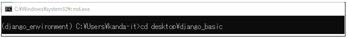 ターミナルが起動したら、「desktop/django_basic」フォルダに移動します。