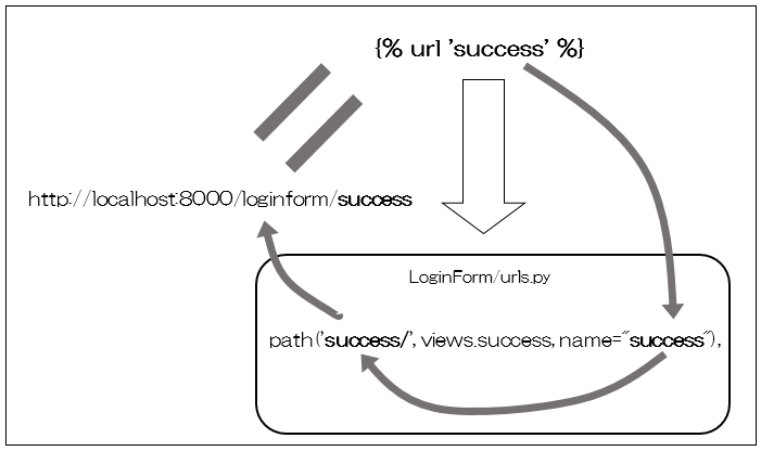 図 5.3 5:{% url ‘success’ %}の仕組み