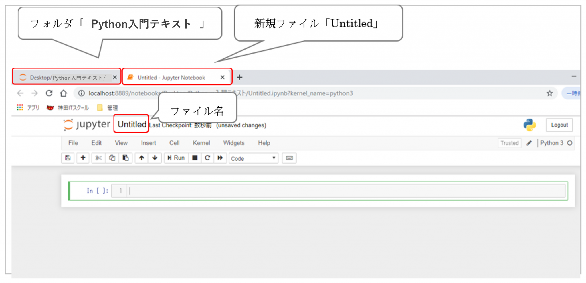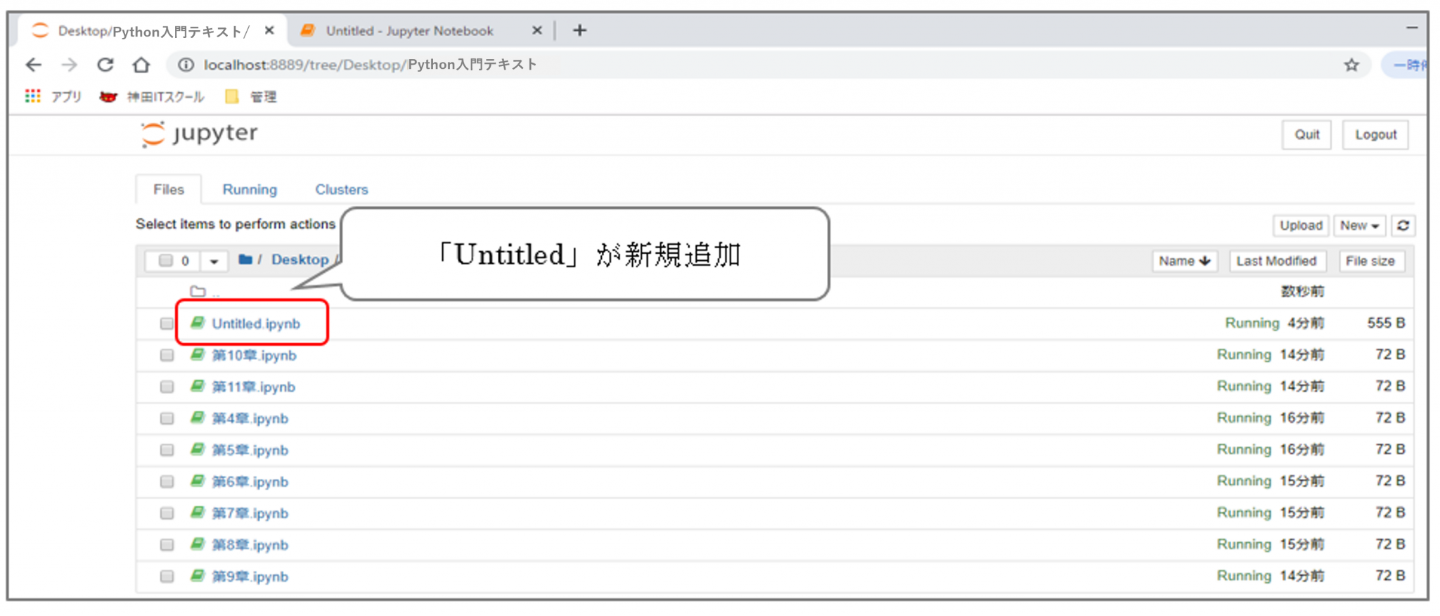 図 3.1.2.4: Python入門テキストにUntitledの追加の確認