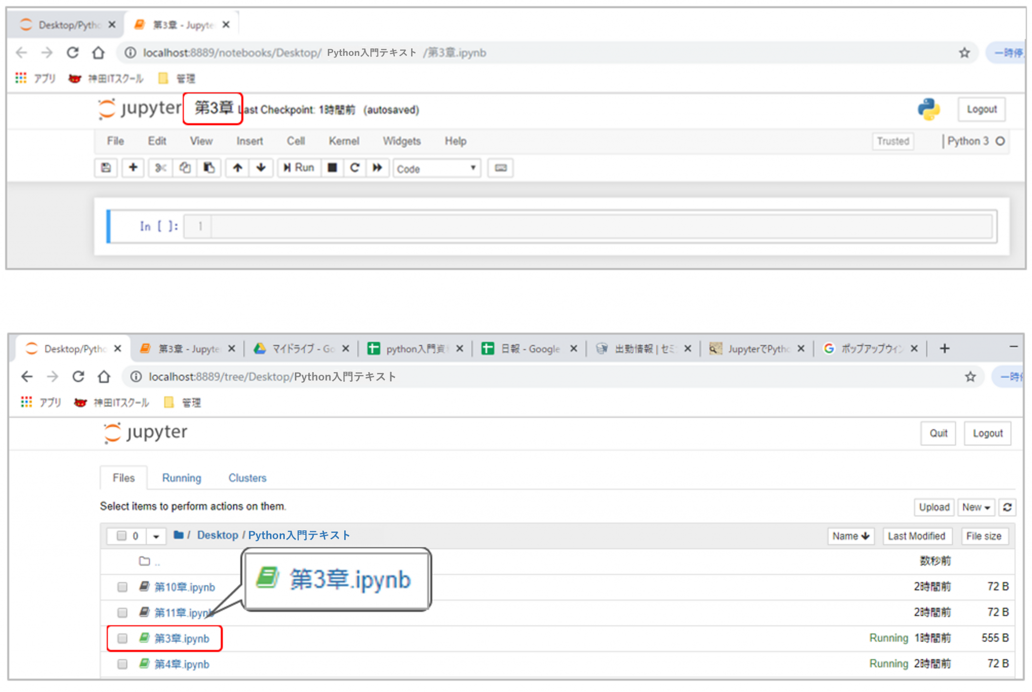 ファイル名が「第3章(.ipynb)」に変わっていることが確認できます。