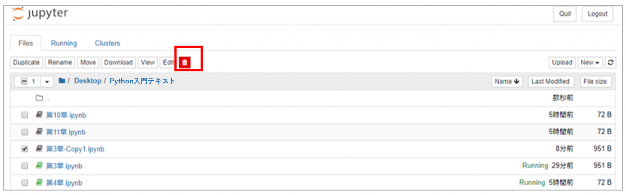 次に先ほど作成した「第3章-Copy1.ipynb」を削除していきます。