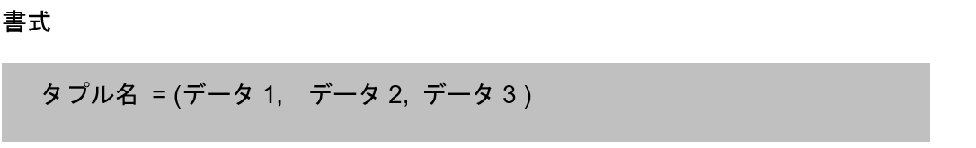 ・ タプルでは各要素の変更(追加や削除、値の更新)が基本的にはできない。