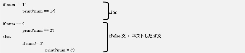 ・ifブロック、elifブロック、elseブロック内にはif文を記述できる。(if文のネスト)