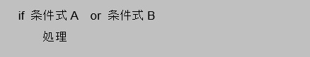 この場合は、もし条件式Aまたは条件式Bのどちらかが合っていたら処理を行う、ということになります。