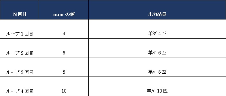 図 9.2.2.2: for文の実行結果イメージ