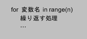 for 文では要素を 1 つずつ取り出しながら繰り返し処理を行うので、結果として先ほどの for 文では n 回繰り返されることになります。