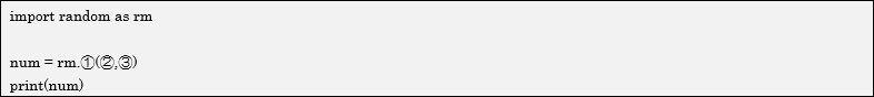 問2 randomモジュールにおいて引数に指定した2つの整数の間から整数の乱数を出力する関数を選択せよ