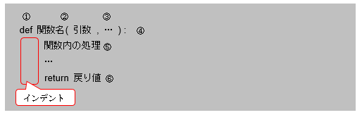 Pythonでは、明確に関数の処理が行われているブロックが明示されません。コロン(:)を記載したら改行をし、次の行から処理の内容を記載します。